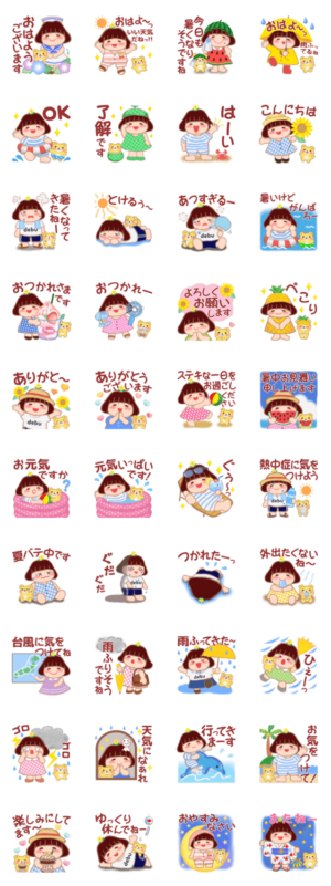 ちょっと太めの女の子「でぶりん」の夏の日常に使えるスタンプです!めぐみん より発売