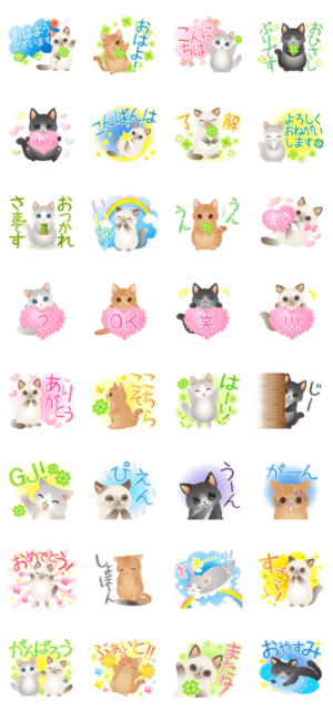 毎日使える幸せ運ぶクローバーとふわふわ猫 スタンプ情報
