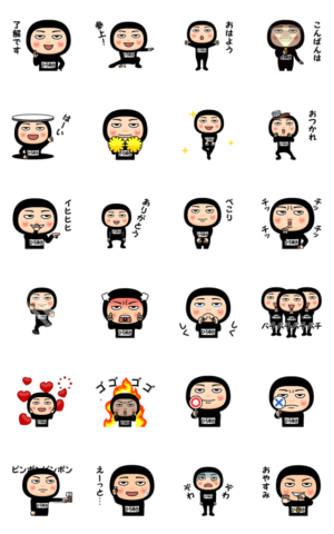 黒の全身タイツを身にまとった、ひろゆき(ヒロユキ)の名前スタンプ。くーが より発売