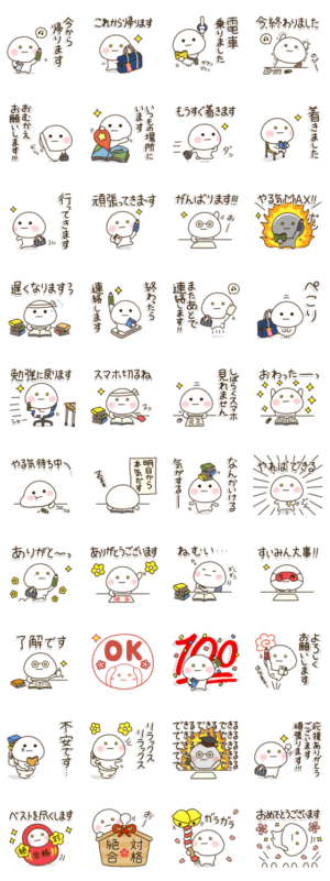 連絡時間の短縮で絶対合格!!学校,塾, 予備校帰りの連絡や毎日使う言葉がギュッと詰まった受験生を全力サポートするスタンプでござる!!がんばれ受験生!!byだいふくまる
