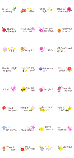 英語の花スタンプ*よく使うあいさつ言葉のダウンロードはこちら↓