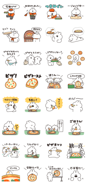 ピザとうさぎのスタンプです。ナポリ より発売