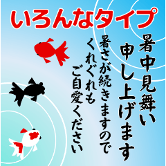 暑中お見舞い申し上げます、残暑、夏のあいさつ。熱中症注意、水分補給、暑いので無理しないでね等 気づかいスタンプも。プラス バースディーカードや日常会話なども