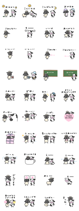 へんてこなひつじとウシのコラボスタンプです! 久しぶりのうしさん!顔がちょっと変わったよ! リクエストありがとうございました☺︎bocunoe より発売