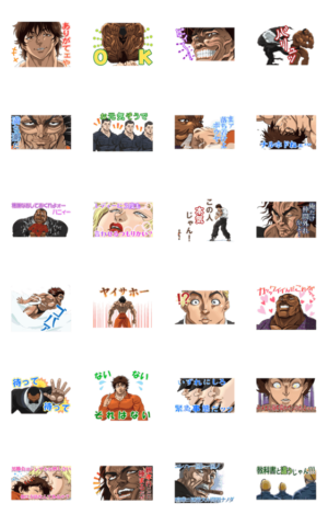 TVアニメ『範馬刃牙』の動くスタンプが登場ッ! 名シーンや名セリフが盛りだくさんな地上最強のスタンプでトークを盛り上げろッッ!!株式会社エムアップ より発売
