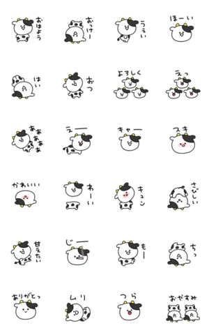 激しく動くシュールなミニ牛の動くスタンプです。eribo より発売