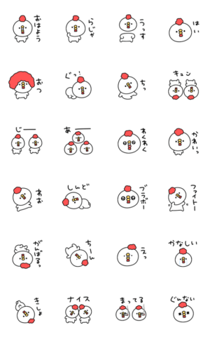 ふざけて動くシュールなミニにわとりのスタンプです。eribo より発売