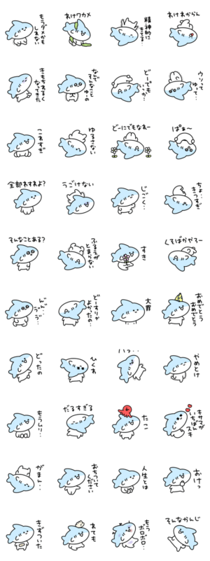 感情が荒いシュールなミニサメのスタンプ②です。eribo より発売