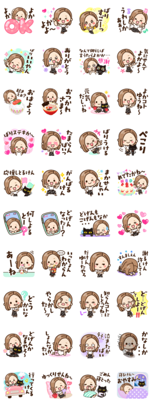 女性が九州・博多弁を使っているスタンプです。方言がかわいく、九州・博多弁を使っている人はもちろん、そうでない人も使えます。