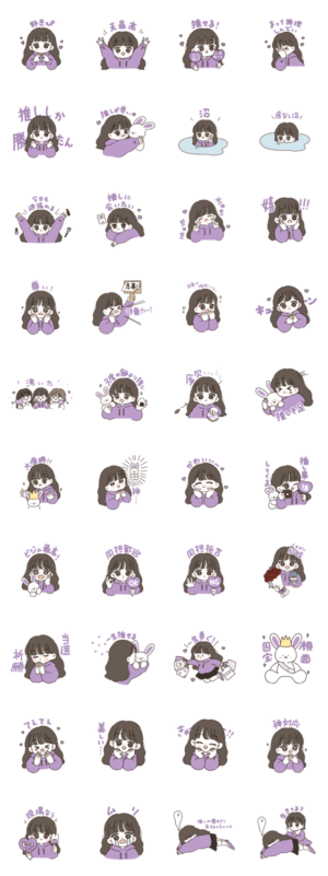 denのLINEスタンプ「推し活してる女の子(紫色)」登場!den より発売