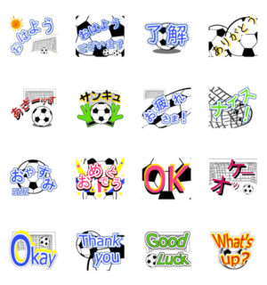 サッカー道具で挨拶しよう!おはようからおやすみ。あざーっす、OK、おめでとう、ナイス、Good Luckもあるよ。ケヤキ男 より発売