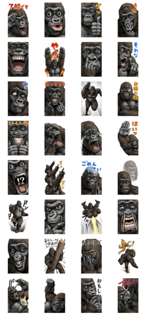 ひとつひとつのゴリラの表情がリアルで面白いです。ビックスタンプなので迫力もあり、笑えます!