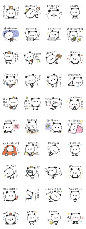 家族連絡用に使いやすいパンダのスタンプ。表情はあまり変わらないが、その分しぐさに表現力がある。