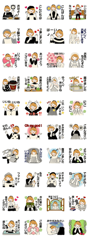 今回はモノトーンコーデのリボンちゃんのやさしい日常スタンプです。