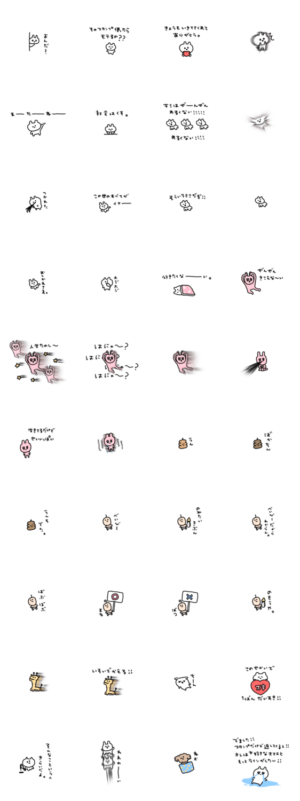ちいさいいきもののスタンプ。文字もキャラも小さいので見づらく、ユーザビリティは良好とは言い難い。しかしその分「スタンプに注目させる効果」は高いかも。