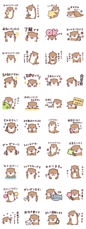 【修正版】カワウソのかわいさ溢れる表情いっぱい!小さなカワウソくんの敬語スタンプが出ました!丁寧なことばのあいさつや気づかいなど、ゆるい敬語で毎日使える内容です。