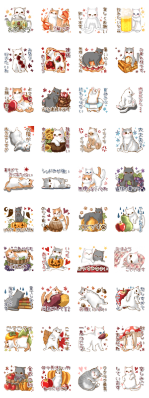 夏から秋まで幅広く使える日常会話の猫スタンプです。 残暑から秋めくまで長く使えます。茶々 より発売