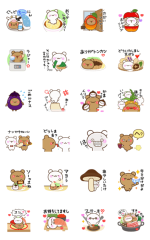 くまと食べ物のダジャレスタンプ。ギャグ調が強いが、全体的に汎用性は低くなく、イラストのクオリティも上々。普通に使いやすいと思う。