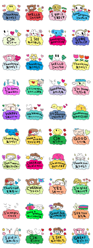 シンプルな日常会話スタンプです。日本語&英語スタンプ
