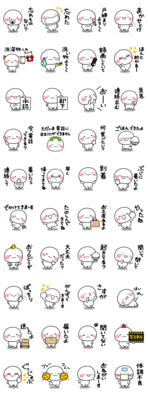 しろまるの家族の連絡内容を揃えたスタンプ2です。みんなでずっと使える内容を揃えましたのでスタンプ初心者の方にもオススメです。【作:いしいともこ】