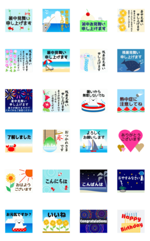 動く▶上品 大人な夏スタンプ 暑中見舞い 2 スタンプ情報