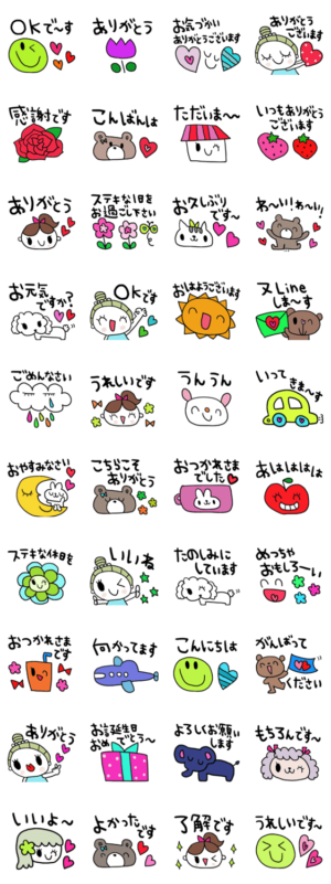 種類が豊富なスタンプなのでシンプルゆえ挨拶や返答に困ることが無い素敵なスタンプです。イラストも可愛らしいので好きです。