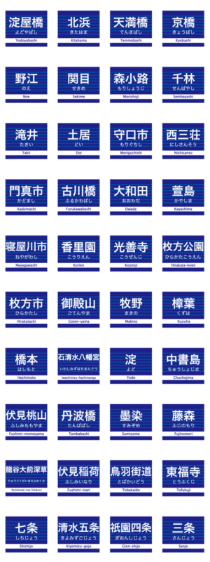 京阪地域を走る電車の駅名スタンプ スタンプ画像一覧