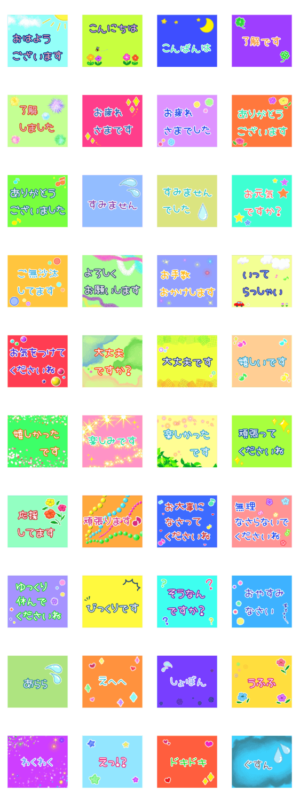普段使いできる可愛い敬語のスタンプ第2弾♪おはようございます/了解です/嬉しいです/楽しみです/お大事に/ゆっくり休んでくださいね/応援してます/大丈夫ですか?/