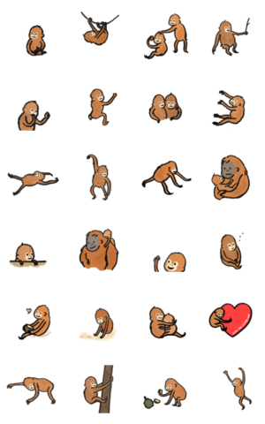 小さくて愛らしいウータンたちの日常の一コマをスタンプにしました。ひふたろう より発売