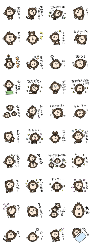 愛情いっぱい♡シュールなミニ猿のスタンプです。eribo より発売