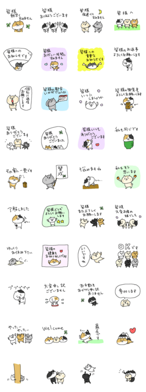 にしおかあきのグループ用猫さんスタンプです。敬語でサークルや社会人グループでの活動に。プレゼントにも。にしおかあき より発売