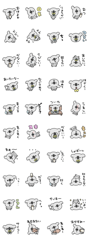 赤ちゃんになったシュールなミニコアラのスタンプです。eribo より発売