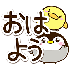 『もちっペ×まるピヨ』スタンプの毎日便利に使える、大きい文字のスタンプです。丸くてちいさいぺんぎんや、かわいいヒヨコのキャラが好きな方にぜひ。【かたこ】