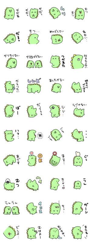 一生やる気が出ない。シュールなミニ恐竜のスタンプです。eribo より発売