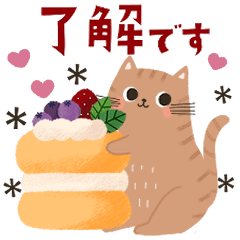 可愛い猫とお菓子の飛び出すスタンプです!日常のあいさつやお祝いの言葉など。ありがとう/おつかれさま/おめでとう/了解/よろしく