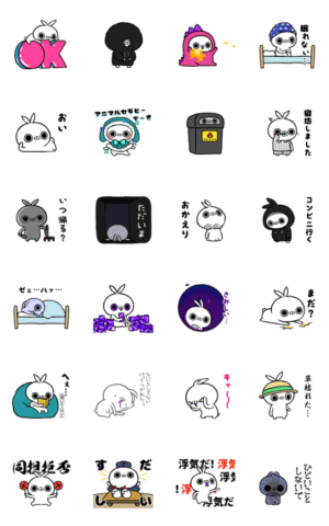 心に深い闇と病みを抱えたウサギの動くスタンプ第17弾!家族や友達に向けて普段遣いしやすい日常ネタから喜怒哀楽の感情、面白いリアクションが沢山♪孤独でも使いやすい!