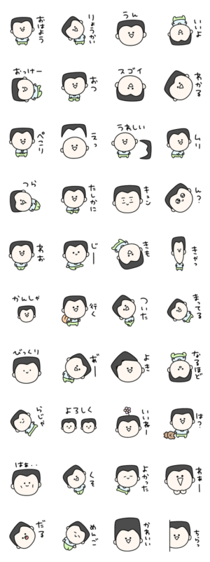 しつこい。シュールな小さい角刈り男のスタンプです。eribo より発売