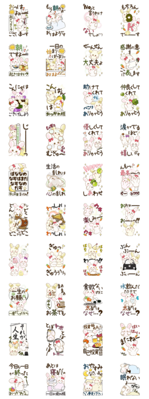 スタンプにはどんな言葉がいいのか迷ってるぽっちゃりウサギさんです。
