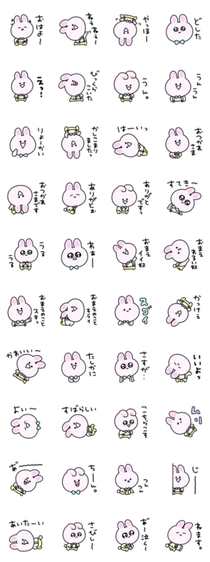 おめかししたシュールなミニうさぎのスタンプです。eribo より発売