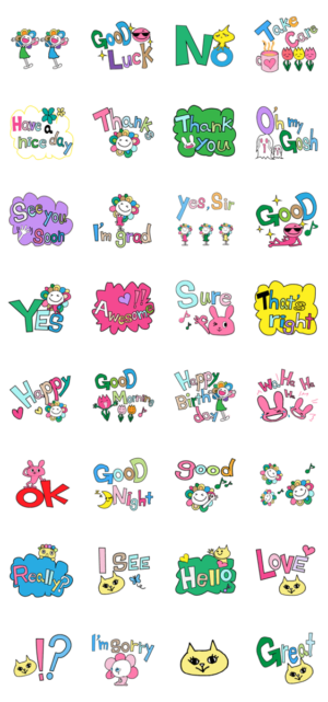 可愛いカラフルなスタンプです。日本語付きバージョンもあります♪Yumekamo より発売