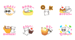 おこりんぼ子猫のおこねこちゃんたちから、白猫のユキちゃんが動き出しました!お菓子でごきげんなユキちゃんでトーク画面を♡Sweet♡に。