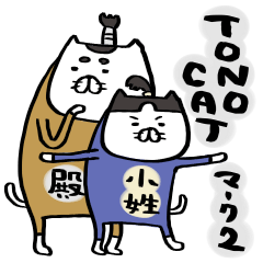 殿様っぽい雰囲気の猫のスタンプ。キャラクターだけでなく、メッセージやシチュエーションにもかなりの個性があり、使い手は選ぶかも。