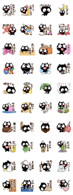 黒猫【くろちー】の元気なスタンプです。よく使う言葉に、丁寧な言葉や、毎日のあいさつ等、便利なネコスタンプ。クロねこ好きな方にぜひ。【かたこ】かたこ より発売