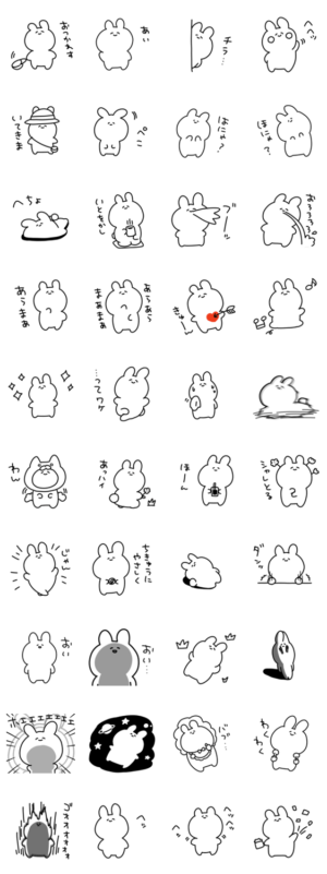 ゆるくてシンプルなうさぎのスタンプ。イラストのクオリティは高いとはいえないが、雰囲気がよく出ていてスタンプとしての使い出はなかなか。