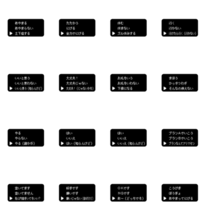 ADVやRPGのコマンドメニューをちょっとシニカルにアレンジしてみました。コマンドの中にほんのり本音を相手に伝えましょう。