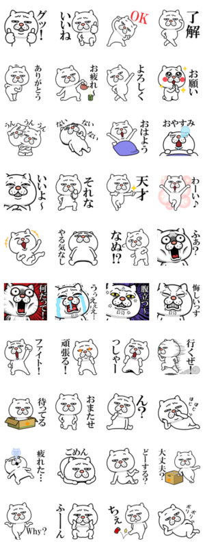 この小馬鹿にした猫の顔がブサ可愛いです。それに安い値段なのもいいですね。会社の同僚などには使えないスタンプですが友達には使っており面白い顔と言ってくれます