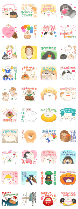 お誕生日や記念日など、一年中使えるお得なイベントスタンプです。 カラーバリエーション豊かなポメラニアンが全部で63匹もいます!ぽこ より発売