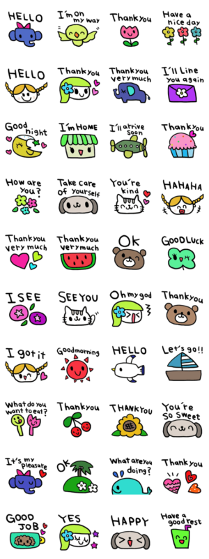 nenerinシンプル日常会話スタンプ450英語 スタンプ画像一覧