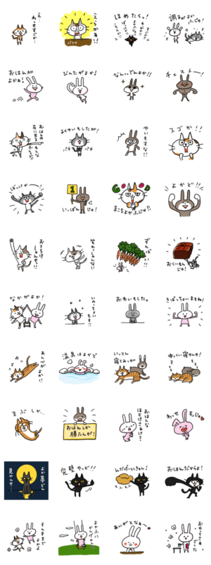 褒めて労う鹿児島県の陽気なネコとウサギ♪ スタンプ画像一覧