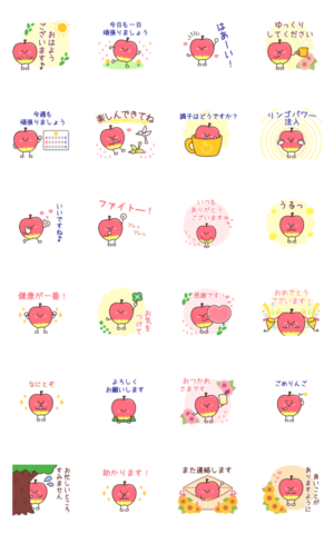 リンゴのキャラクターが飛び出す可愛いスタンプだよ!敬語と気遣いの言葉多めで誰にでも使いやすい♪